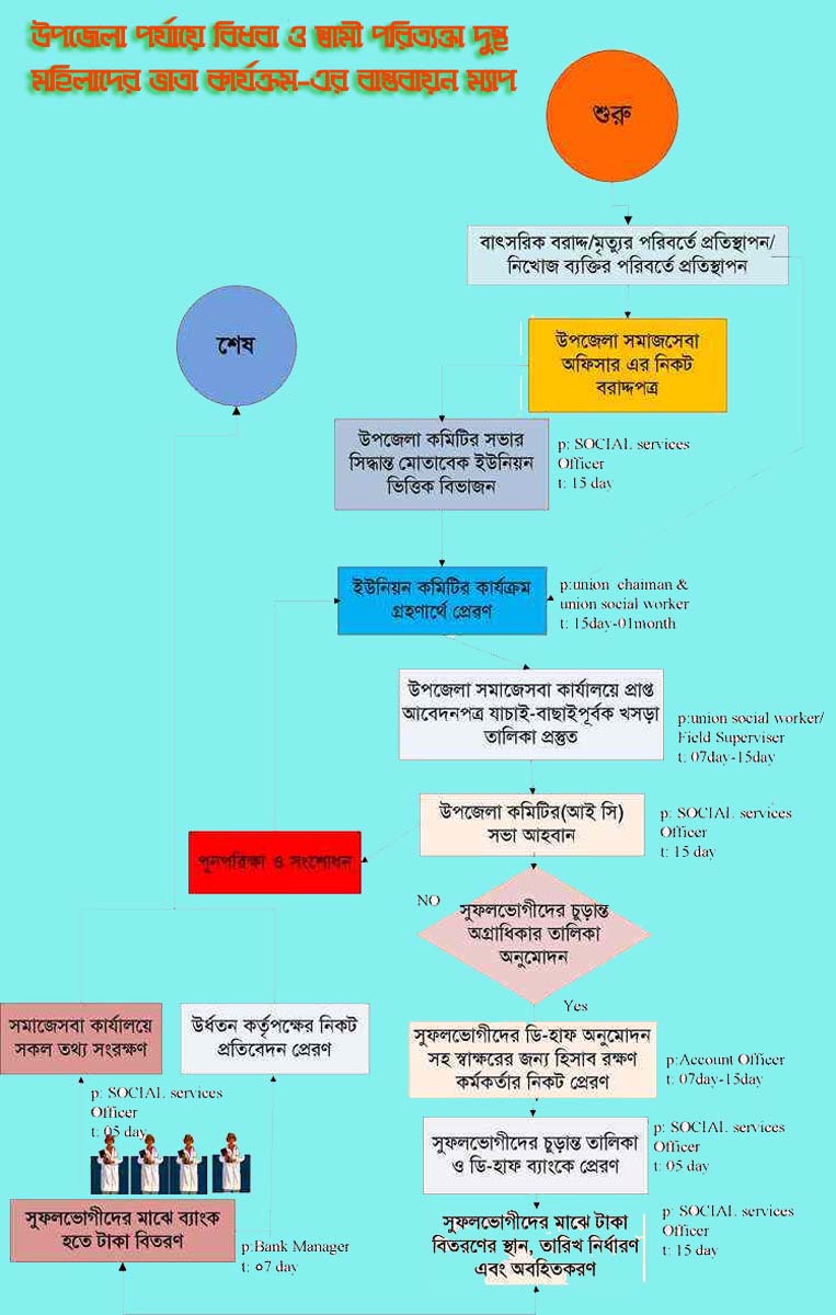 | ৩ | বিধবা ও স্বামী পরিত্যক্তা দুঃস্থ মহিলাদের ভাতা কার্যক্রম প্রসেস ম্যাপ | দেখুন | |